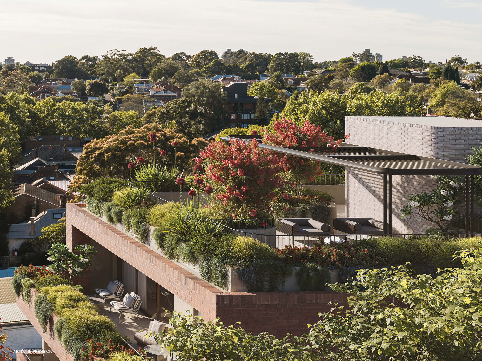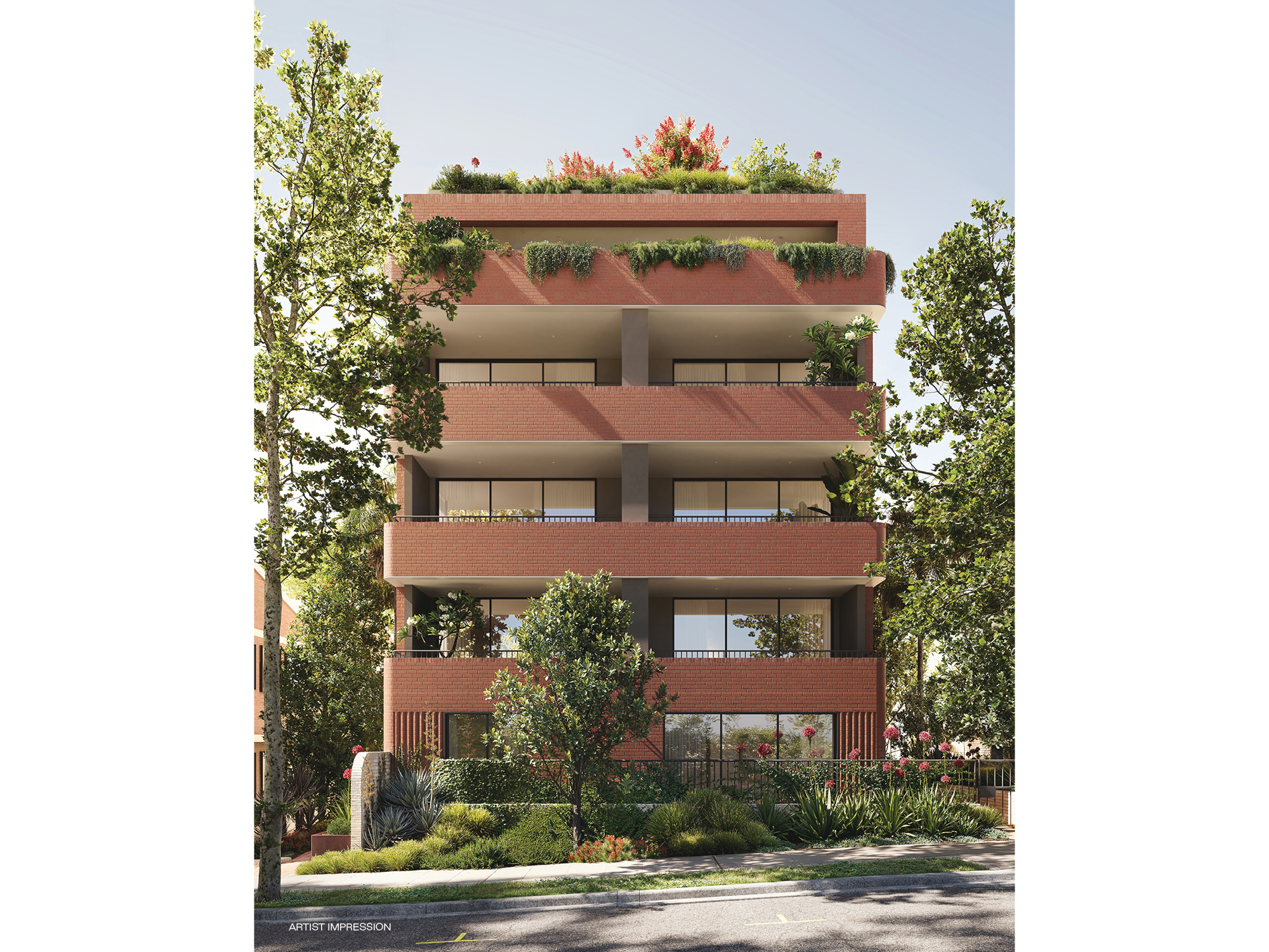 Private balconies and access to a landscaped communal rooftop garden.