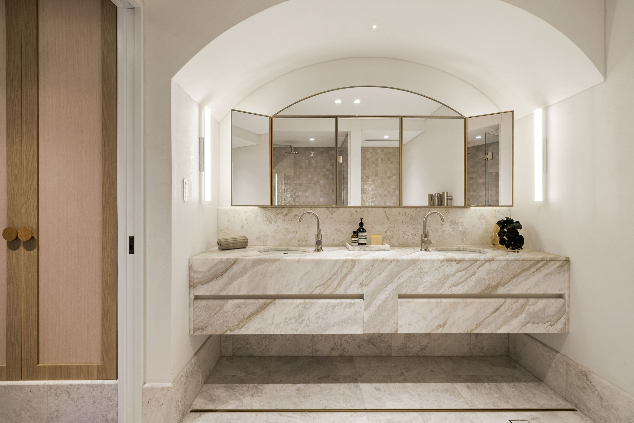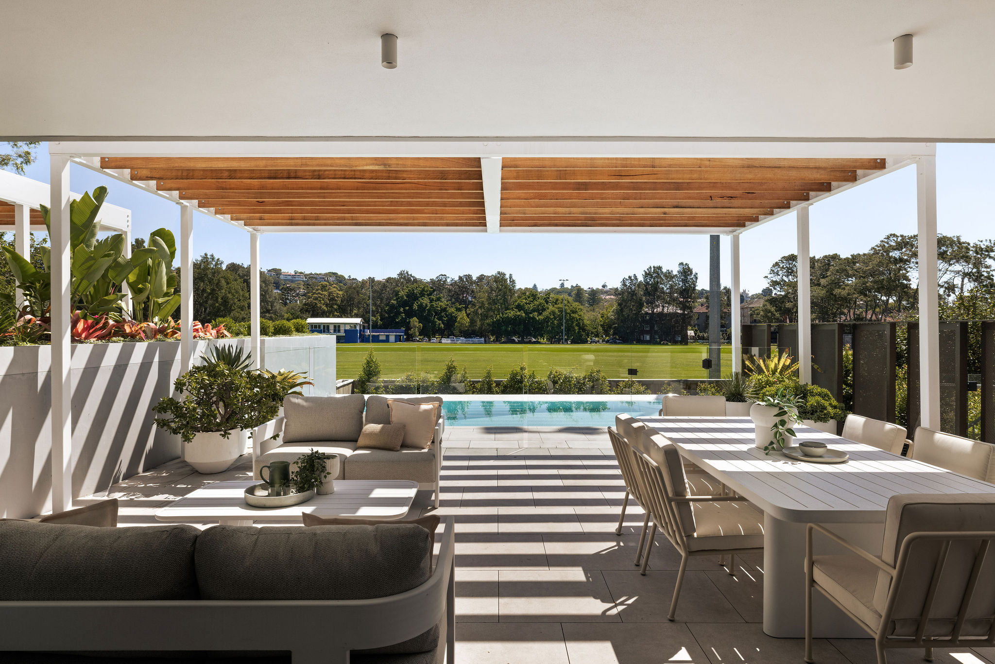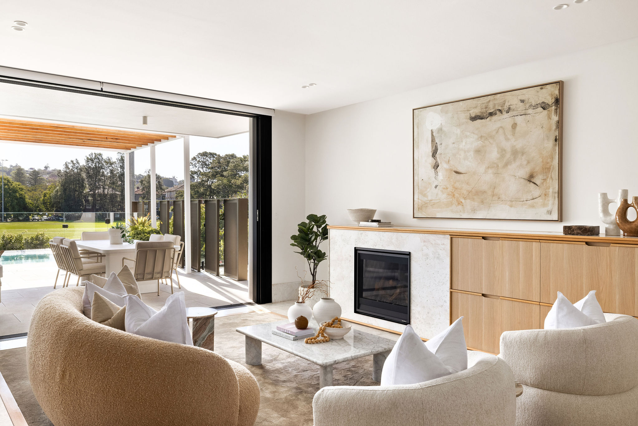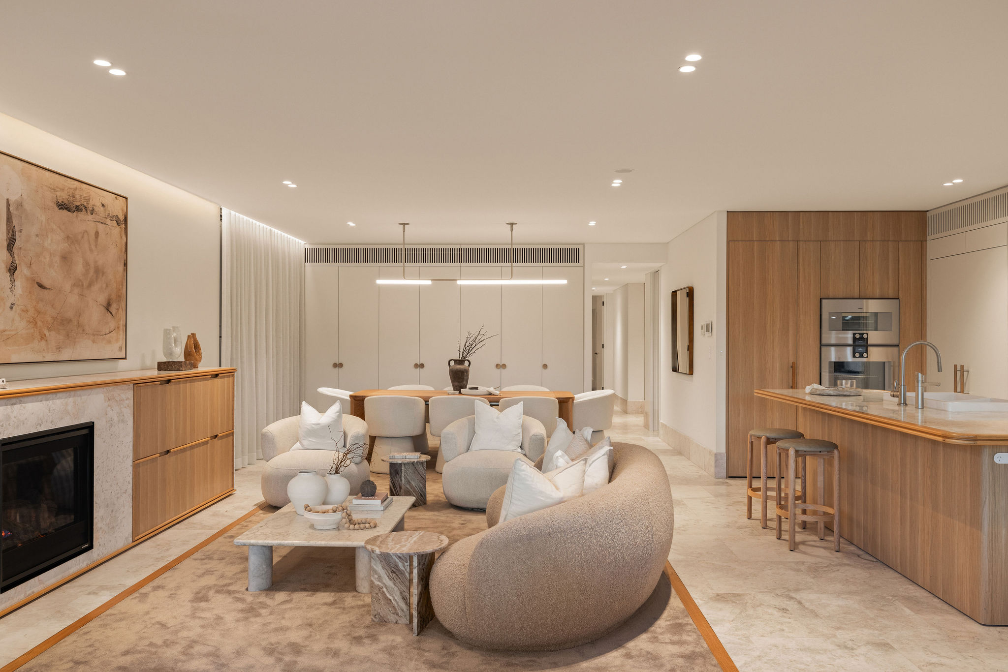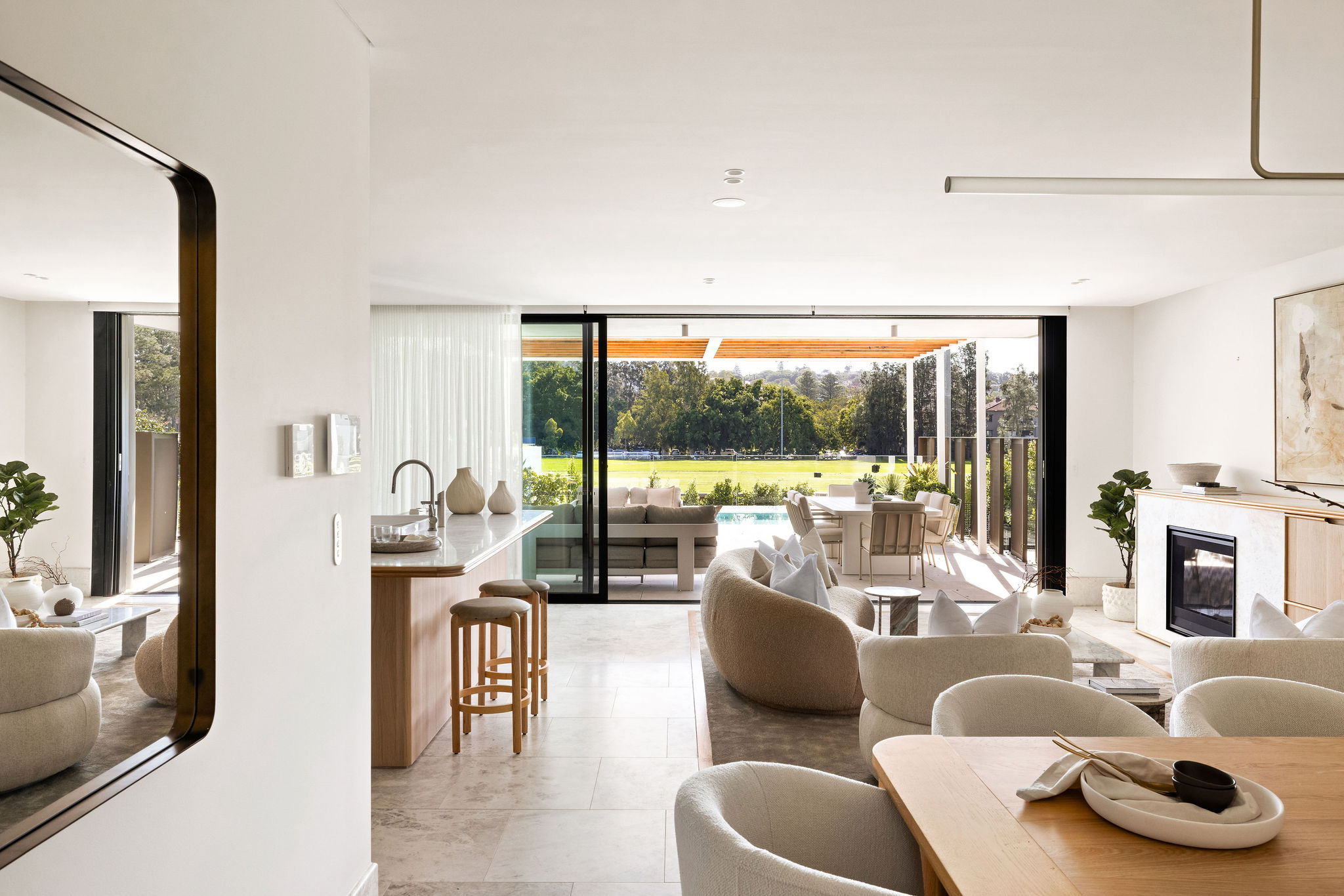 Positioned on one of Rose Bay’s most prestigious streets, Residence 3 at Thirty Four Kent unfolds across an impressive 400sqm of impeccably curated living space. Designed by SJB Interiors, the home is defined by bespoke finishes and considered architectural detailing, with an emphasis on seamless indoor outdoor entertaining. Serene leafy outlooks across Dangar Oval provide a tranquil backdrop to a covered terrace and private saltwater pool.